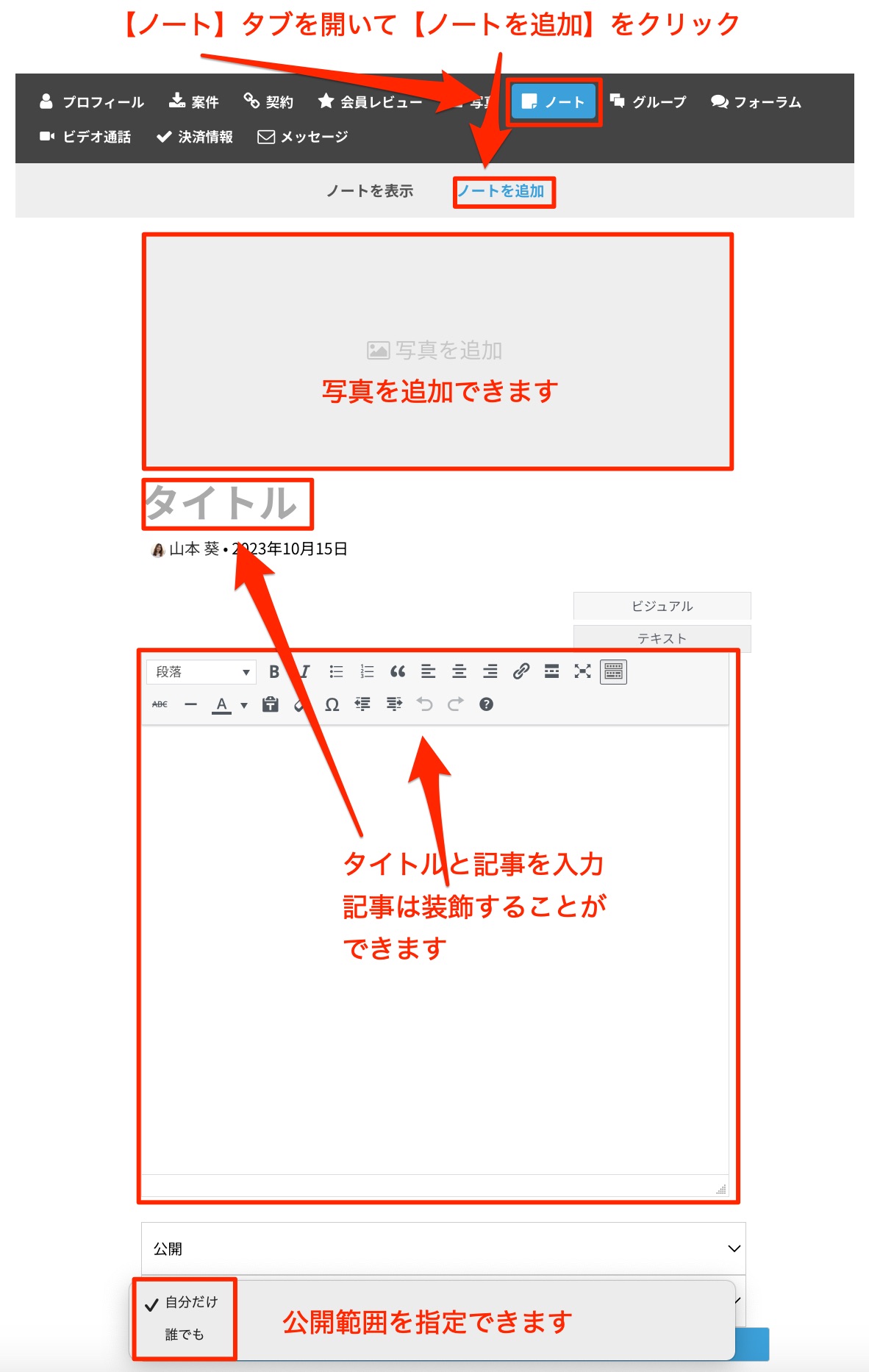 ヘッダー画像やプロフィール画像は必ず設定しましょう。情報が充実しているほうがマッチングには有利です。案件がなくても、プロフィールを見て直接コンタクトしてくる人もいます。