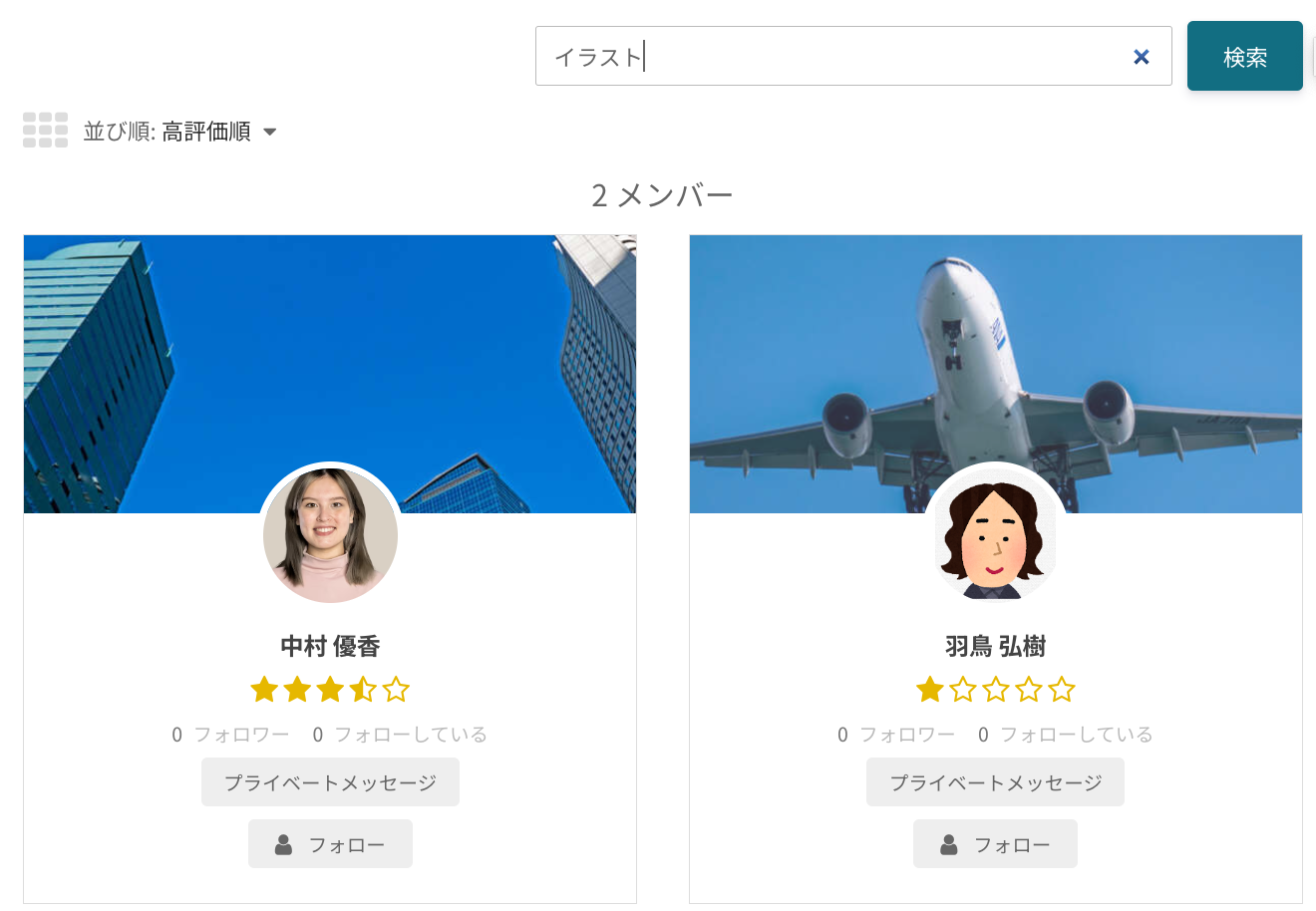 任意のキーワードやユーザータグで会員を検索できます。会員種別によって検索できる会員は制限されているため、すべての会員を制限なく検索することはできません。