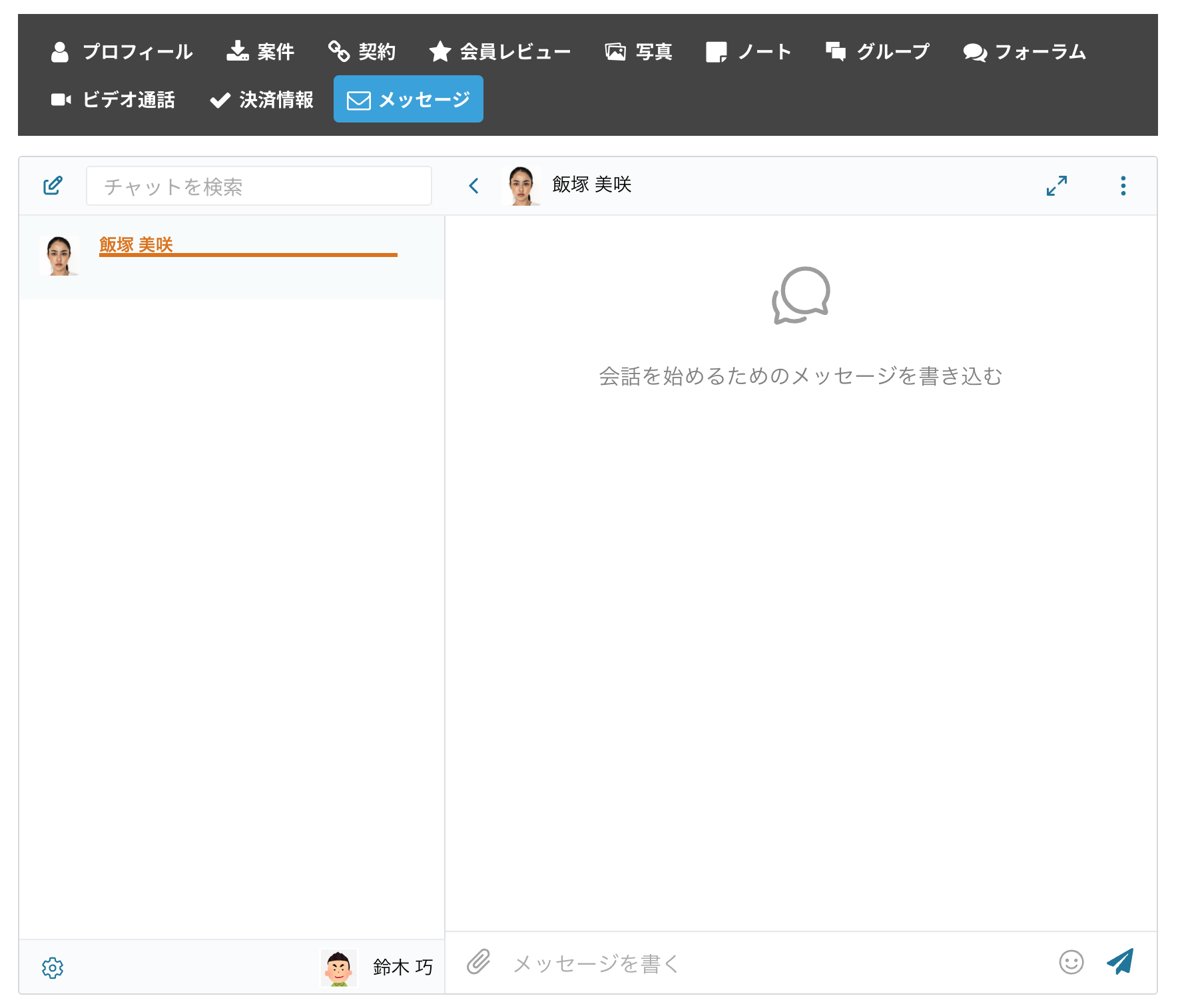 会員リストや会員プロフィールに表示される「プライベートメッセージ」をクリックすることで、会員同士でチャットをすることができます。チャット内容は他の会員からは見ることができません。