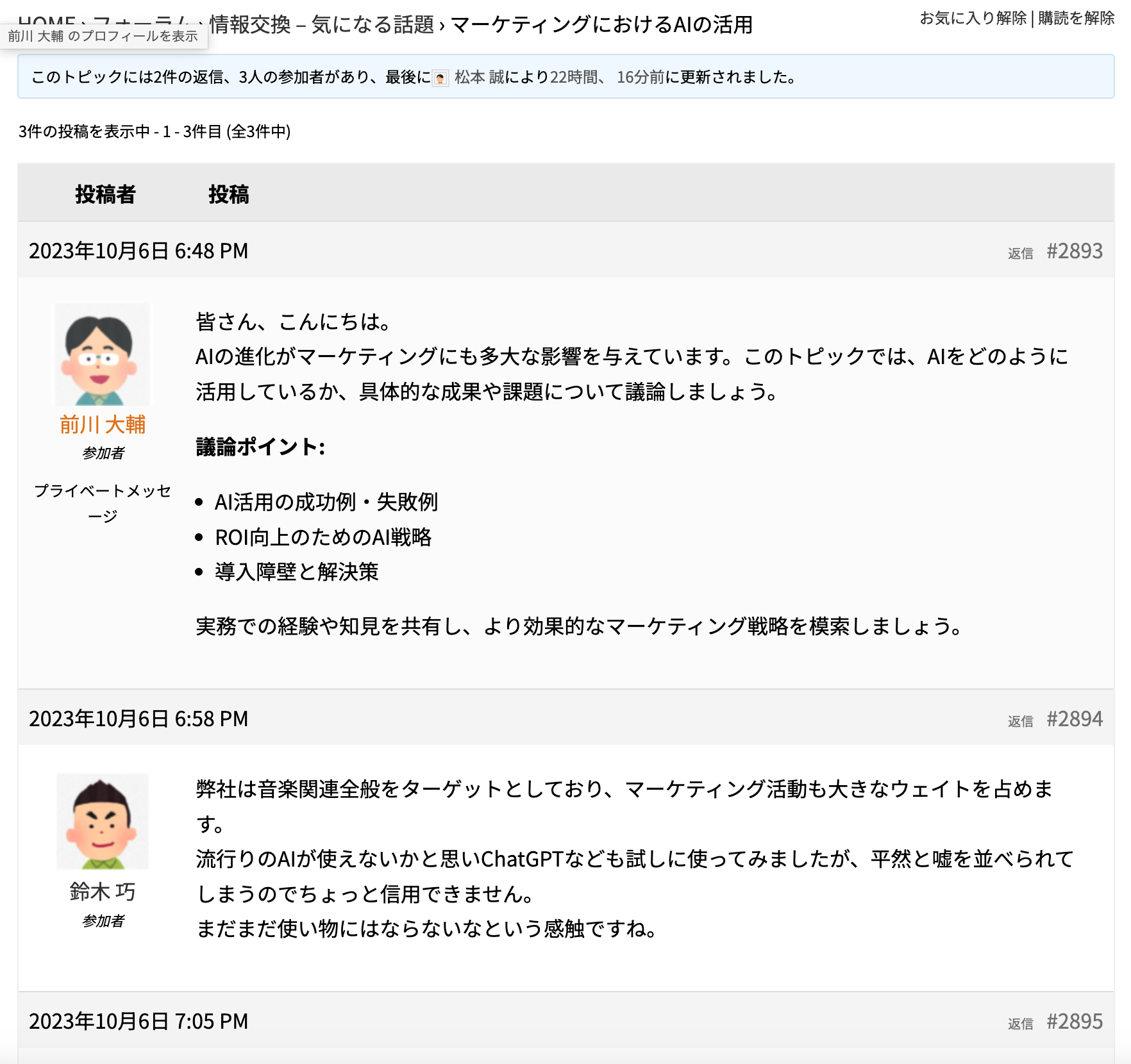 また、会員はトピックに返信することもできます。