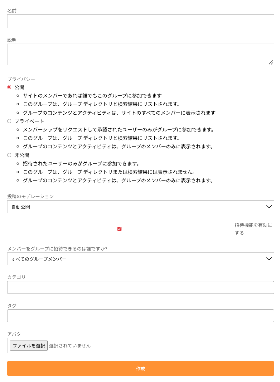以上を入力して「作成」をクリックすると、新しいグループが作成されます。